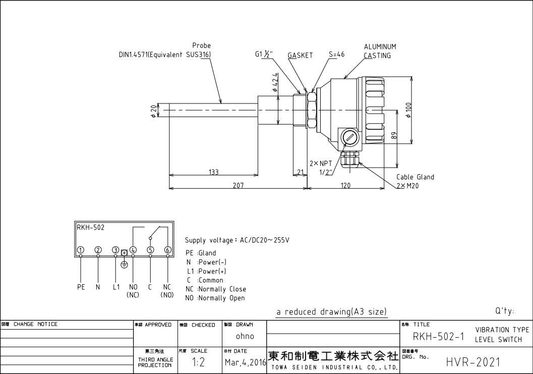 Công tắc mức dạng rung RKH-502-1 là một loại công tắc mức sử dụng nguyên lý cảm biến rung động để phát hiện mức chất lỏng hoặc chất rắn.