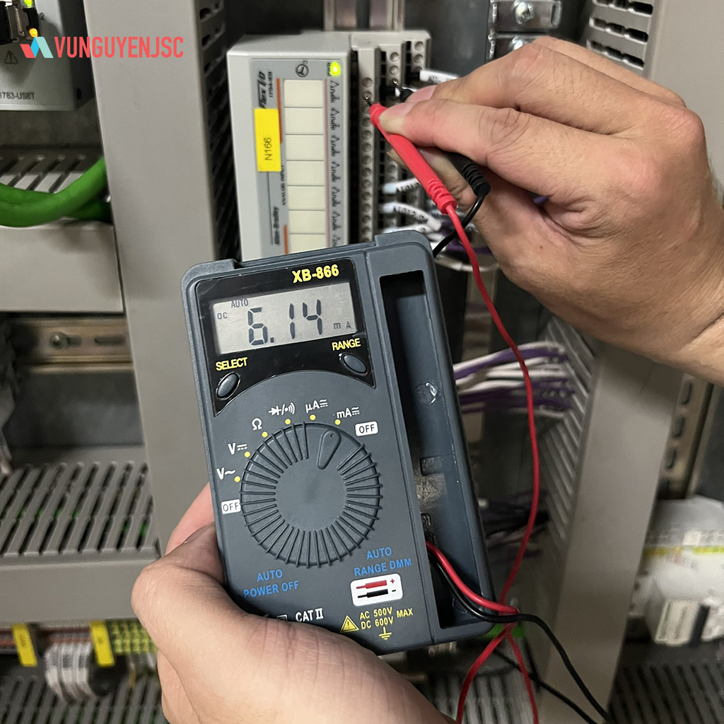 Kỹ thuật viên của Vũ Nguyên đang kiểm tra tín hiệu dòng điện